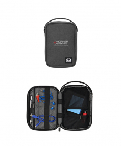 The ultimate travel organizer, the Vault holds cords, charging bricks, memory cards and more tech gear. Made with 900D poly two-tone with PU coating/200D poly lining. Padded grab handle Interior zippered pocket Elastic loops for cords and pens Two interior zippered mesh pockets. 9" H x 6" W x 2.5" D